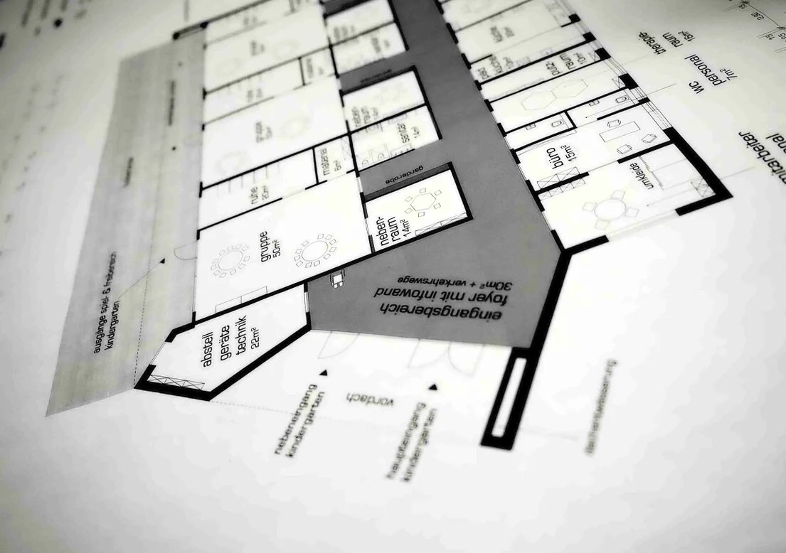 Entwurfsplan Eingabeplan M. 1:100 Kinderhort © Otto M. F. Beutter