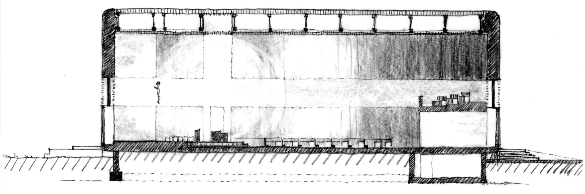 Skizze Schnitt Entwurf für Wettbewerb Kirchenneubau St. Paulus Balingen- Frommern © Otto M. F. Beutter