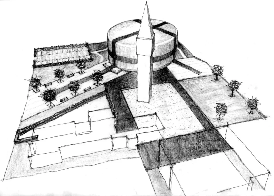 Skizze Vogelperspektive Entwurf für Wettbewerb Kirchenneubau St. Paulus Balingen- Frommern © Otto M. F. Beutter