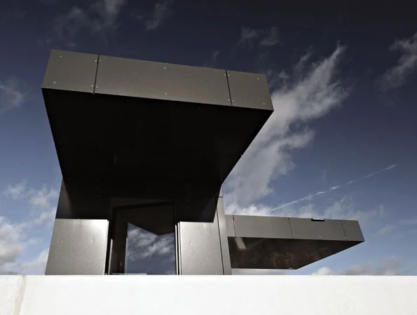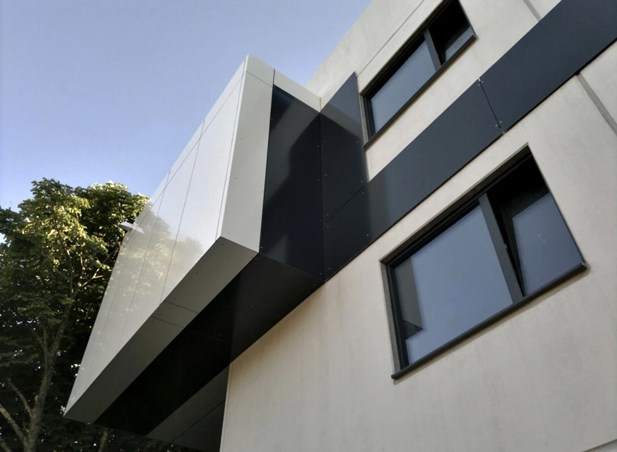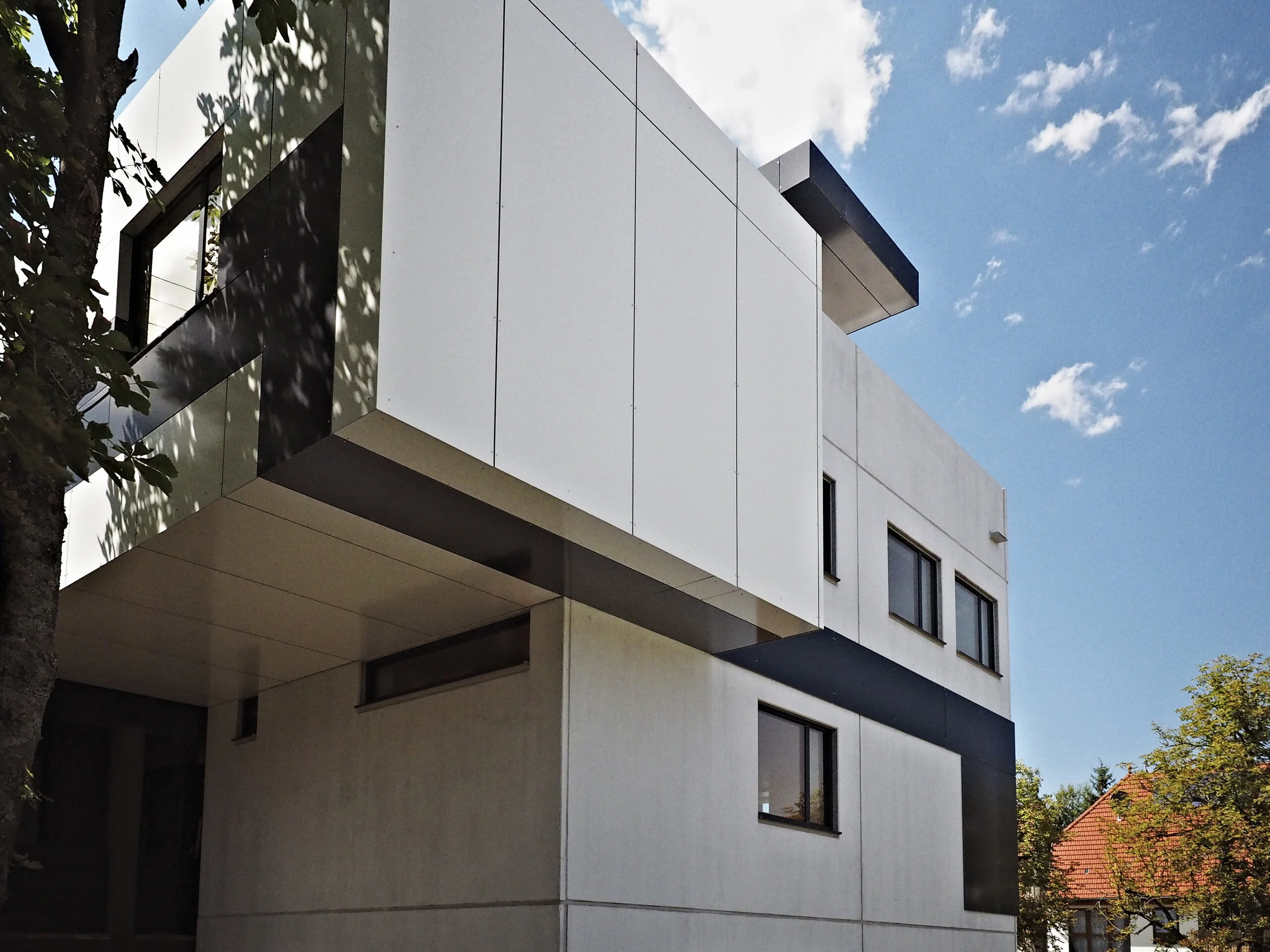Erschwingliche High- End Architektur, auf drei Ebenen, aus Betonfertigteilen.