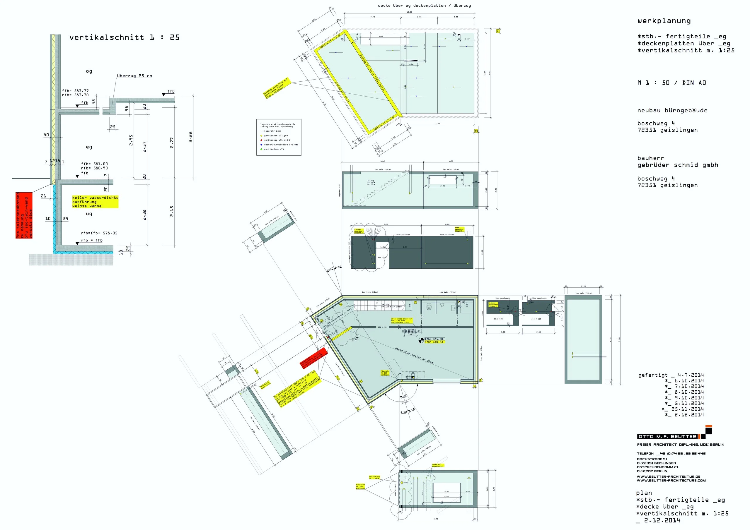 Bei der Ausführungsplanung der über 60 Stahlbetonfertigelemente war besonders darauf zu achten, das die Geometrie der einzelnen Bauteile auch später auf der Baustelle wie ein großes 3d- Puzzle ineinander passt. Auch mussten alle Einbauteile und Durchbrüche für die Gebäudetechnik unter Koordination der nachfolgenden Gewerke im Vorfeld mit eingeplant werden.