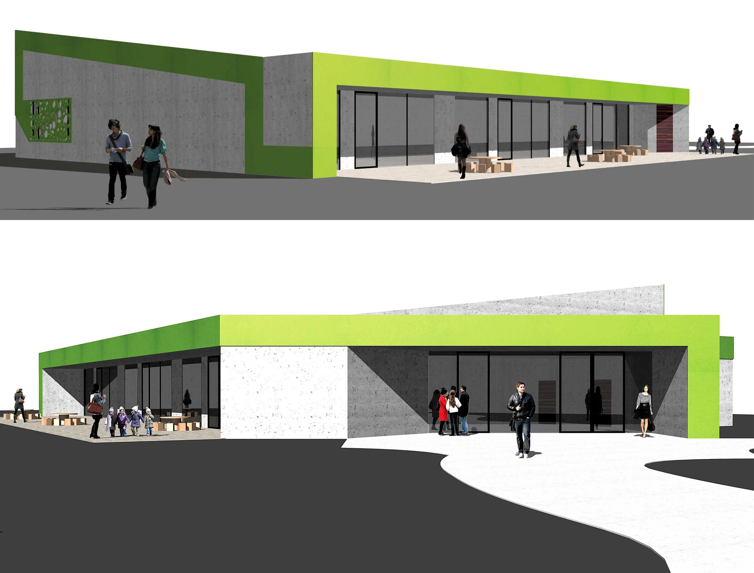Entwurfsvorschlag: Verbesserung der Eingangssituation auch durch Corporate Identity.