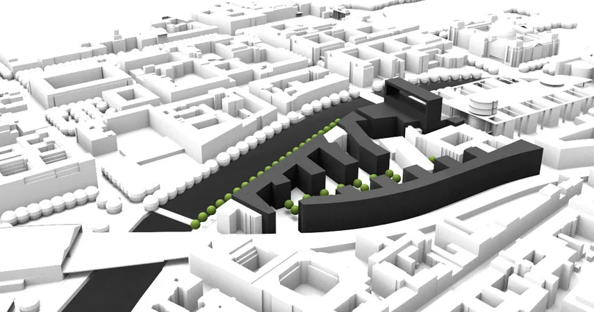 Nördliche Allee wird im Blockinneren im Anschluss an denkmalgeschützte Bauten fortgeführt.