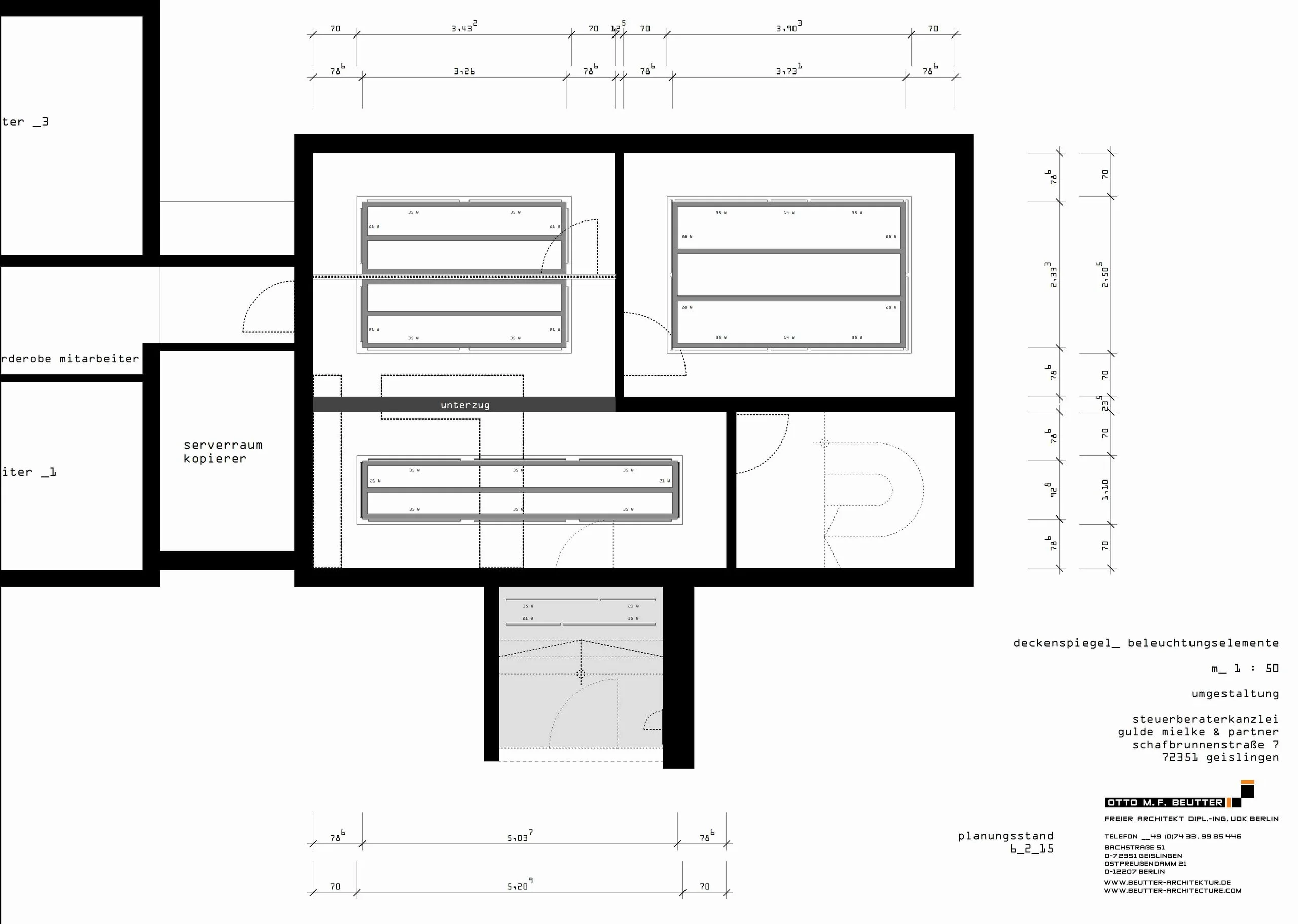 Lichtplanung, Deckenspiegel der Beleuchtungselemente und Deckengestaltung.